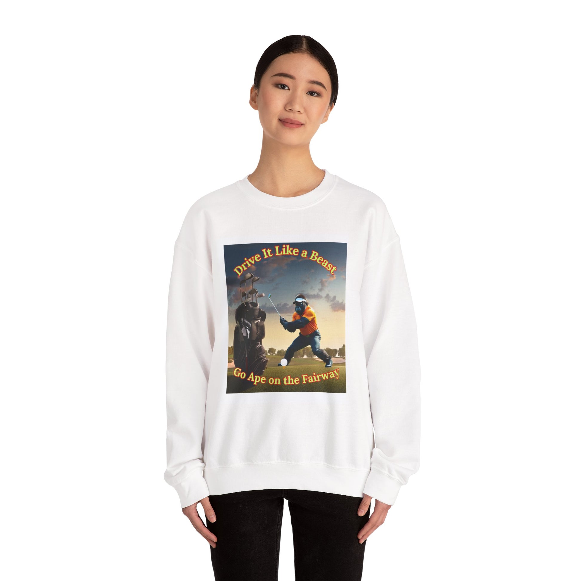 Golf-Themed Heavy Blend Crewneck Sweatshirt - Drive It Like a Beast, Go Ape on the Fairways, Unisex Sweatshirt, Gift for Golf Lovers, [...]